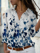 كلير | بلوزة أنيقة – مطبوعة باللون الأزرق وشكل هوائي