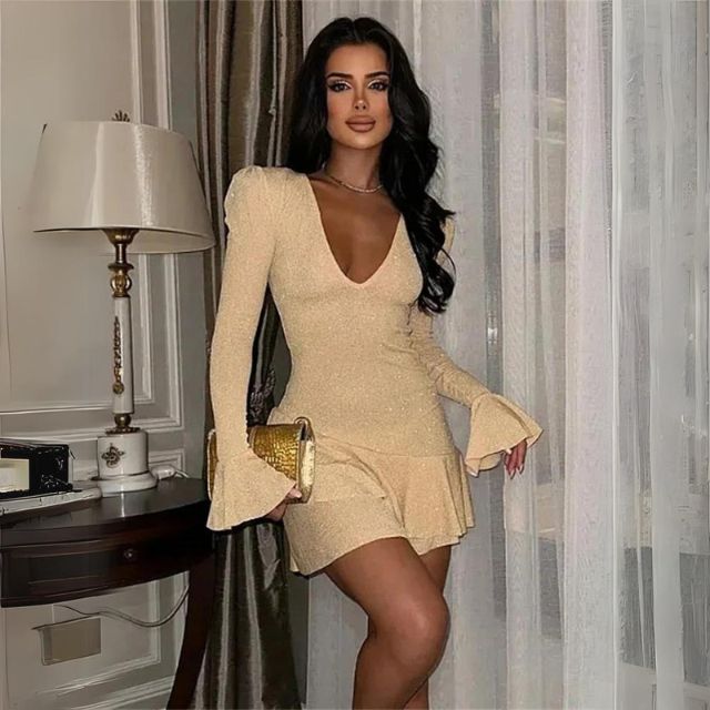 WHY CHOOSE THE SPARKLING MINI DRESS WITH FLARED SLEEVES?