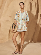 This set combines a short-sleeved polo with a subtle print and matching shorts. Its fluid cut ensures optimal comfort throughout the day. Available in beige, it easily adapts to various occasions.