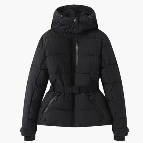 Giulia | Zateplená dámská bunda s kapucí a páskem — Elegance a zimní teplo