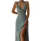 Tato večerní šaty s rozparkem spojují sofistikovanost a šarm. Jejich volný střih zvýrazňuje siluetu, zatímco rozparek dodává odvážný nádech. Ideální pro speciální příležitosti, zaručuje pozoruhodnou přítomnost.