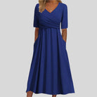 Αυτή η μακριά φόρεμα τύπου πορτοφολιού με κοντά μανίκια προσφέρει μια κολακευτική σιλουέτα. Ο κομψός σχεδιασμός της προσαρμόζεται σε διάφορες περιστάσεις. Διαθέσιμη σε πολλές αποχρώσεις για να ταιριάζει στο στυλ σας.