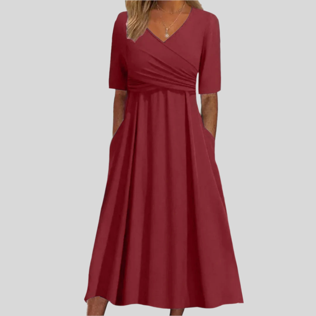 Valentine | Midi Φόρεμα Κομψό Με V Λαιμόκοψη