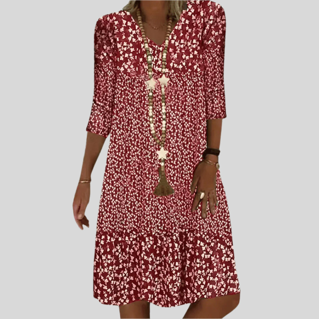 Λοριάν | Κομψό Εκτυπωμένο Φόρεμα Με Μακριά Μανίκια