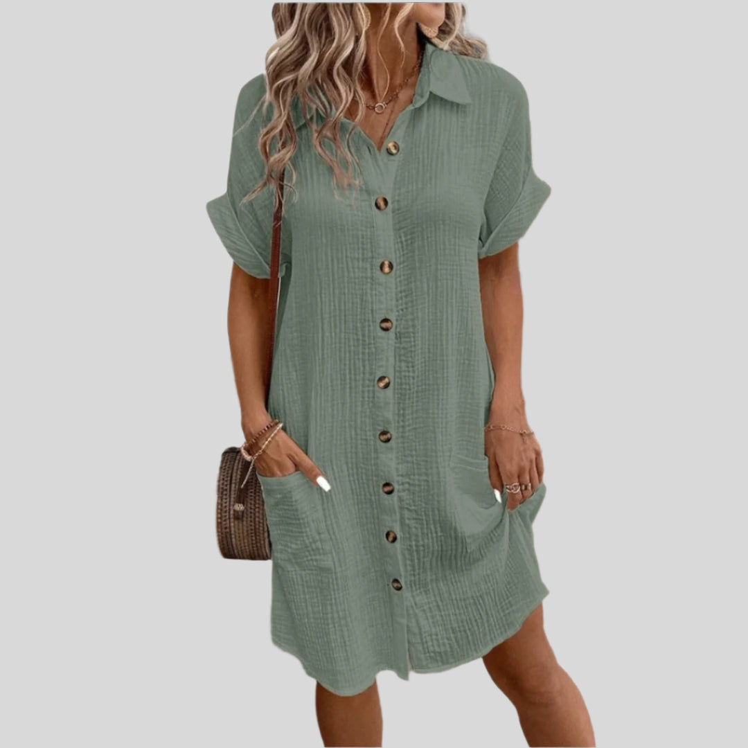 Μόνα | Κομψό και Χαλαρό Φόρεμα Τύπου Πουκαμίσα