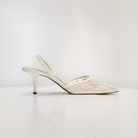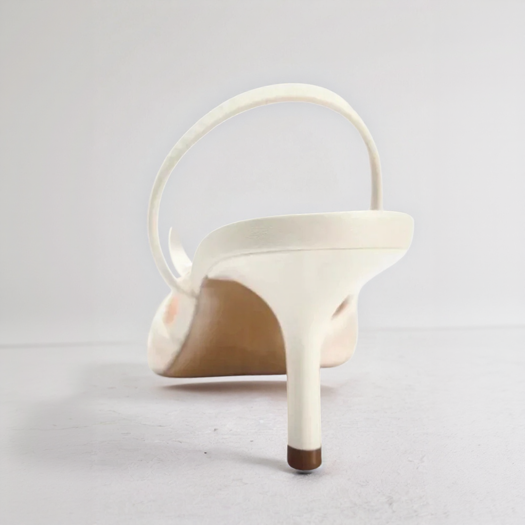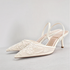Ces chaussures à talon se distinguent par une broderie florale fine sur une tige solide léger et transparent. Leur bout pointu élance la silhouette avec élégance, tandis que la bride ajustée assure un maintien sûr tout en apportant une touche de raffinement.