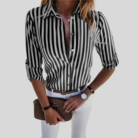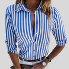 החולצה עם השרוולים הארוכים מציגה עיצוב פסים נצחי. זמינה במגוון צבעים, היא מתאימה לכל הזדמנויות הקיץ. הבד הקל שלה מבטיח נוחות אופטימלית לאורך כל היום.