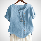 Ez a blúz ötvözi az eleganciát és a kényelmet nyári napjaidhoz. Kézműves tervezése kiváló minőséget és figyelmet biztosít a részletekre. Több színben elérhető, így minden stílushoz illik.