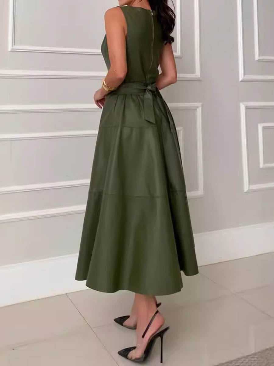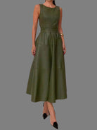 Questo abito senza maniche offre una silhouette a trapezio che valorizza. Il suo tessuto leggero garantisce un comfort ottimale. Perfetto per le giornate di sole.