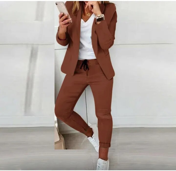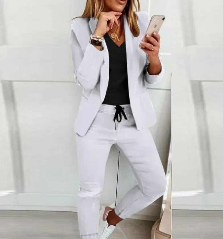 Questo completo offre una vestibilità accuratamente progettata per valorizzare la tua silhouette. Il tessuto di qualità garantisce un comfort ottimale per tutta la giornata. Disponibile in diverse colori e taglie per adattarsi alle tue preferenze.