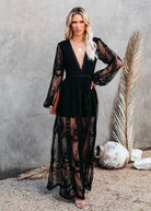 Deze lange zwarte jurk belichaamt de bohemien geest met zijn delicate borduursels en vloeiende snit. De lange mouwen zorgen voor comfort en lichtheid, terwijl de silhouet subtiel wordt benadrukt. Een elegante en veelzijdige piece voor al uw gelegenheden.