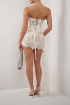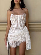 Deze korte jurk benadrukt de silhouet met een gedurfde getailleerde snit. Het mouwloze ontwerp en de gekruiste rug geven een unieke karakteristieke touch. Ideaal voor avonden of evenementen waar je met vertrouwen wilt opvallen.