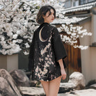 Clémence | Kurtka Kimono Damska Czarna w Kwiaty Wiśni