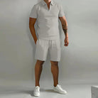 Ten zestaw łączy elegancką koszulę polo z dopasowanymi szortami. Oferuje wyrafinowany wygląd, zapewniając jednocześnie optymalny komfort. Idealny na gorące dni i nieformalne okazje.