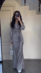Este conjunto de duas peças combina um estilo refinado e conforto absoluto. Composto por uma blusa de mangas longas com cinto e uma saia longa e evasê, cria uma silhueta graciosa e feminina. Ideal para realçar os seus momentos do dia a dia, assim como os seus eventos mais especiais.