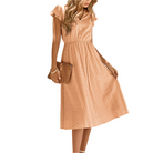 Este vestido de verão leve oferece um decote em V lisonjeiro e mangas com babados para um toque romântico. Seu corte fluido garante conforto ideal ao longo do dia. Perfeito para saídas na cidade, brunches ou férias.