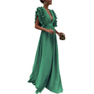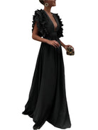 Louise | Vestido Longo Elegante com Babados e Decote Profundo