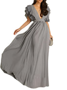 POR QUE ESCOLHER O VESTIDO LONGO ELEGANTE COM VOLANTES E DECOTE PROFUNDO?