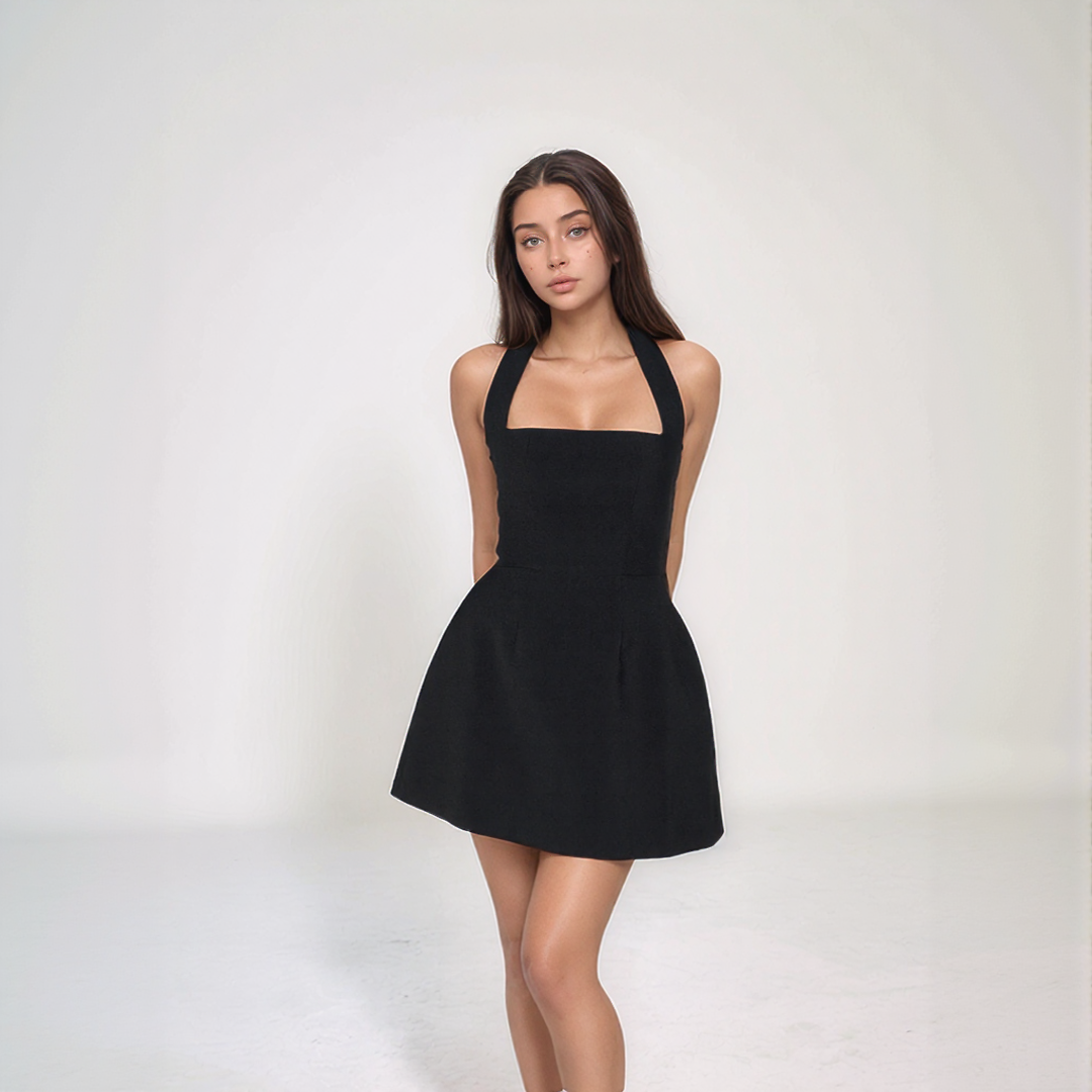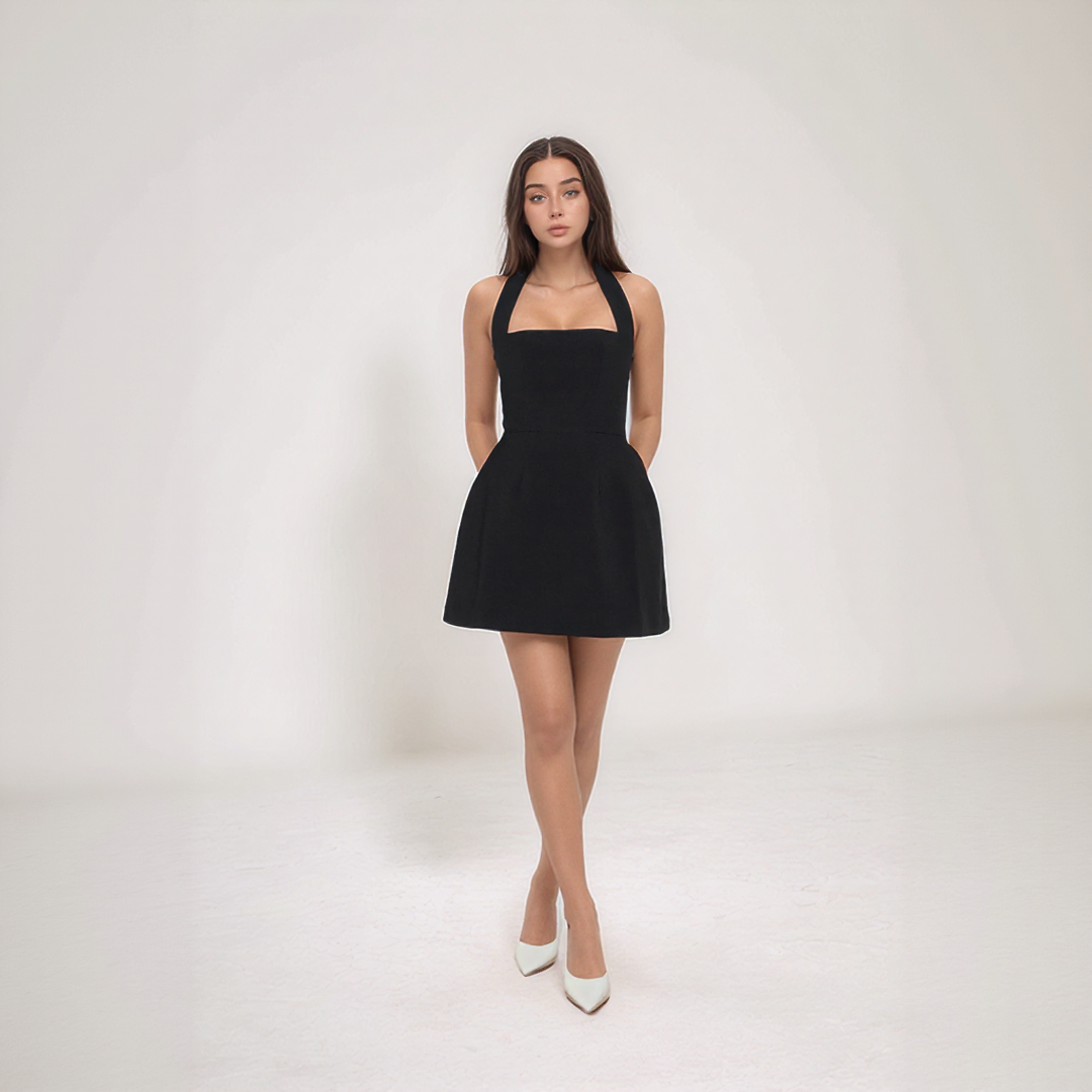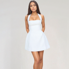 Sandra | Vestido Mini de Verão – Decote Halter e Volume Fluido