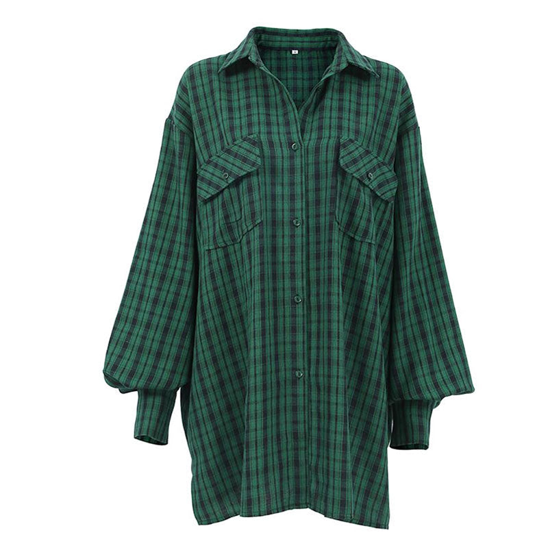Această cămașă oversized prezintă un model cu carouri îndrăzneț și umeri căzuți pentru un aspect modern. Mâneci voluminoase cu manșete adaugă o notă feminină. Confeționată dintr-un amestec de țesături plăcute, este ideală pentru toate sezoanele.